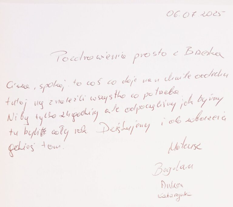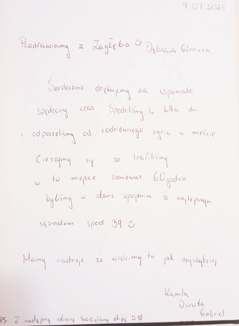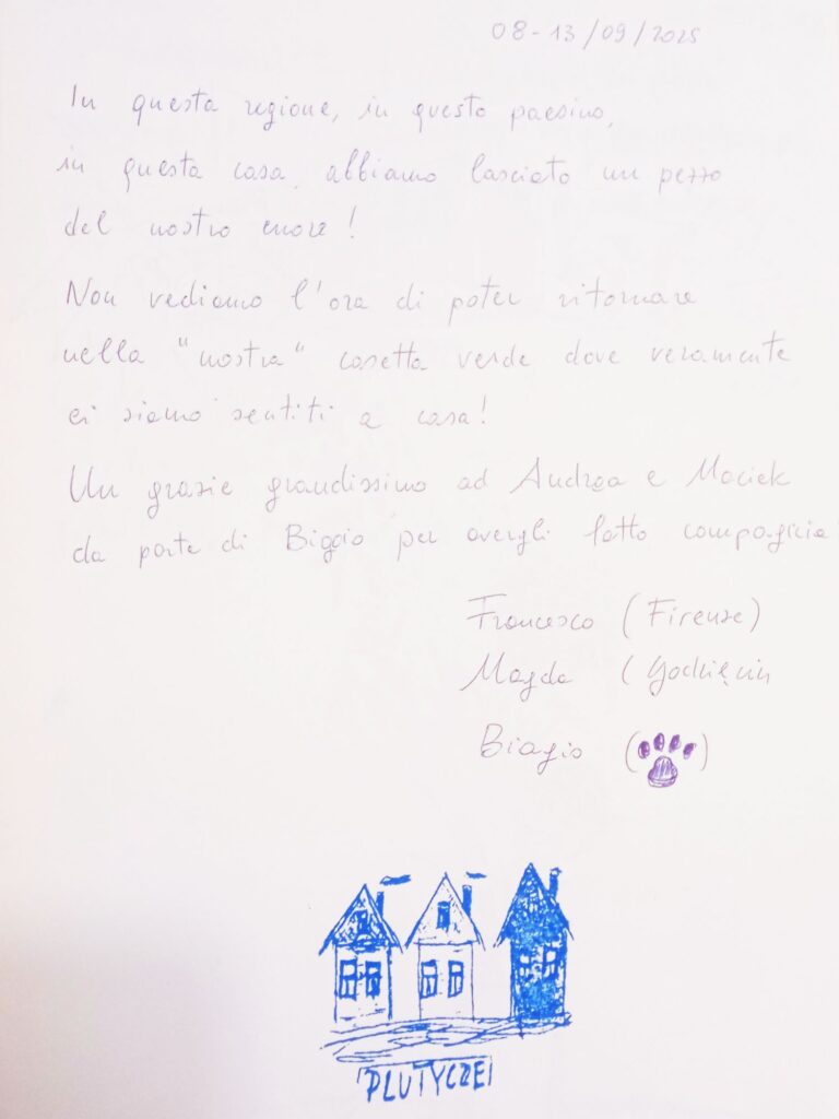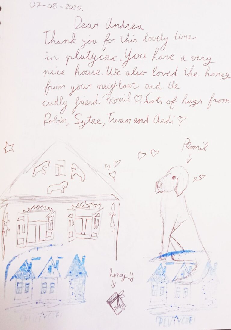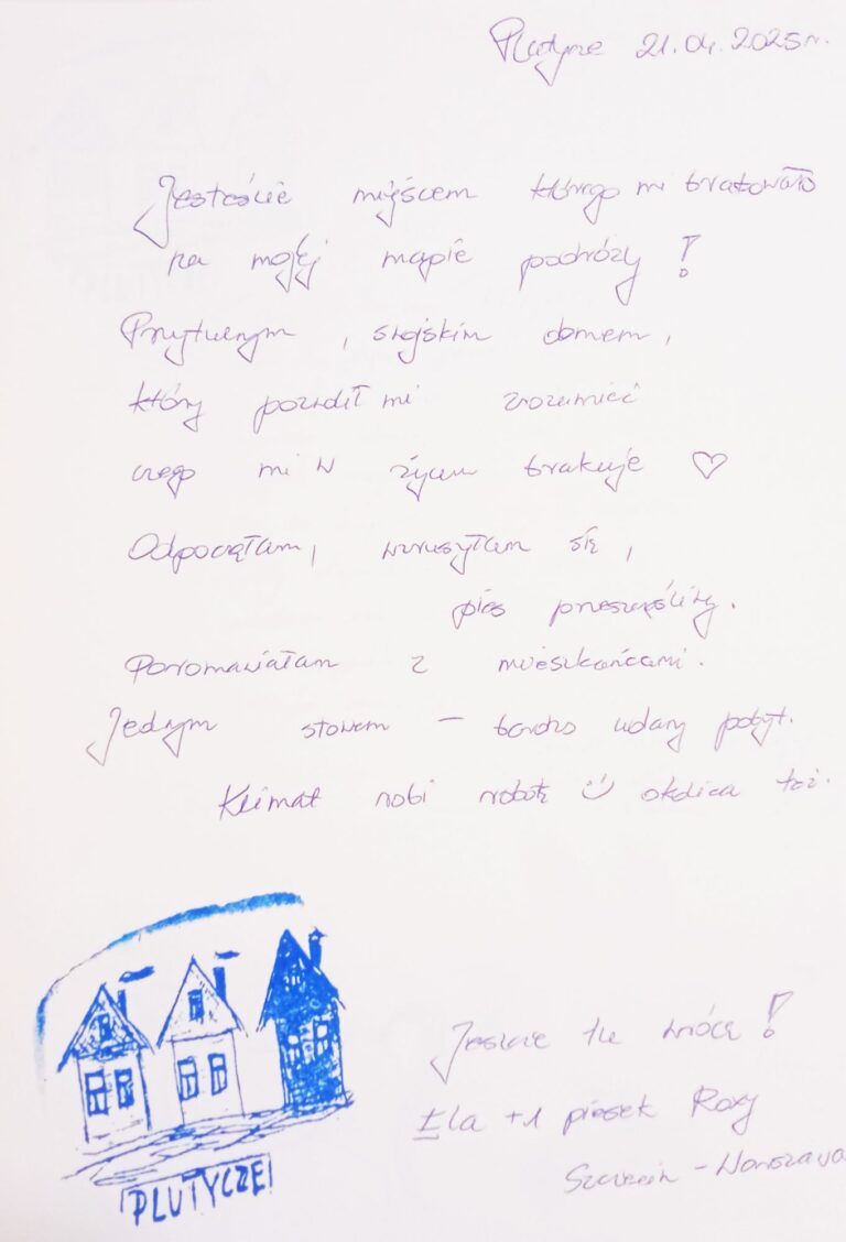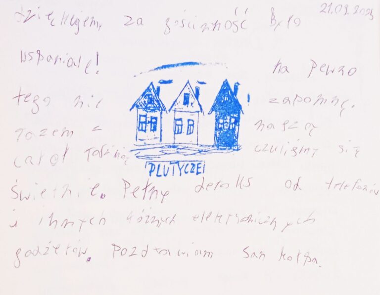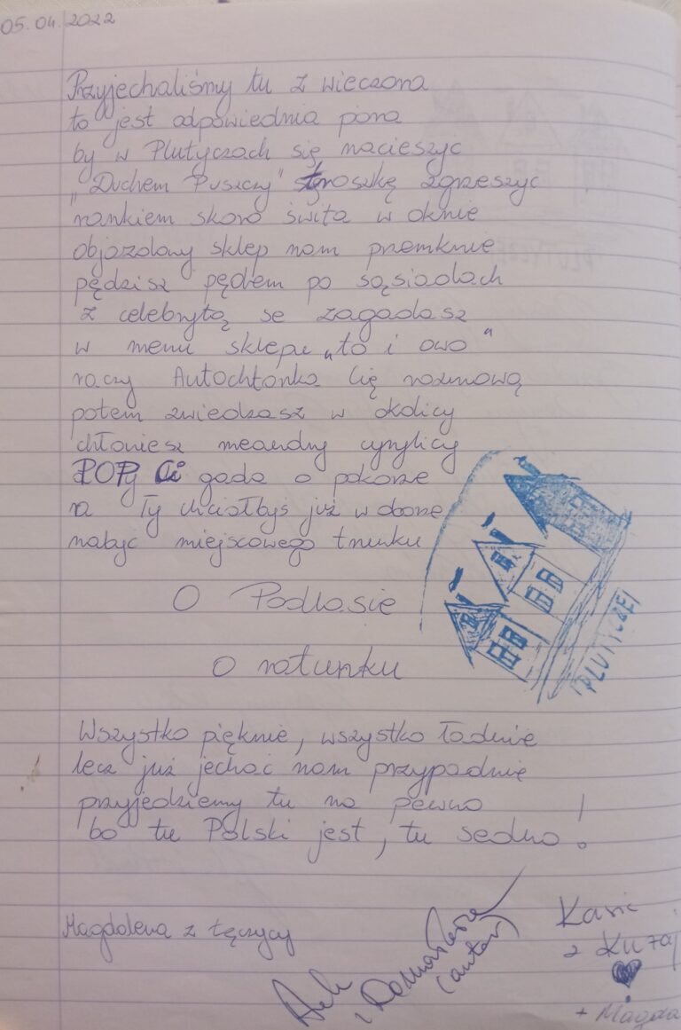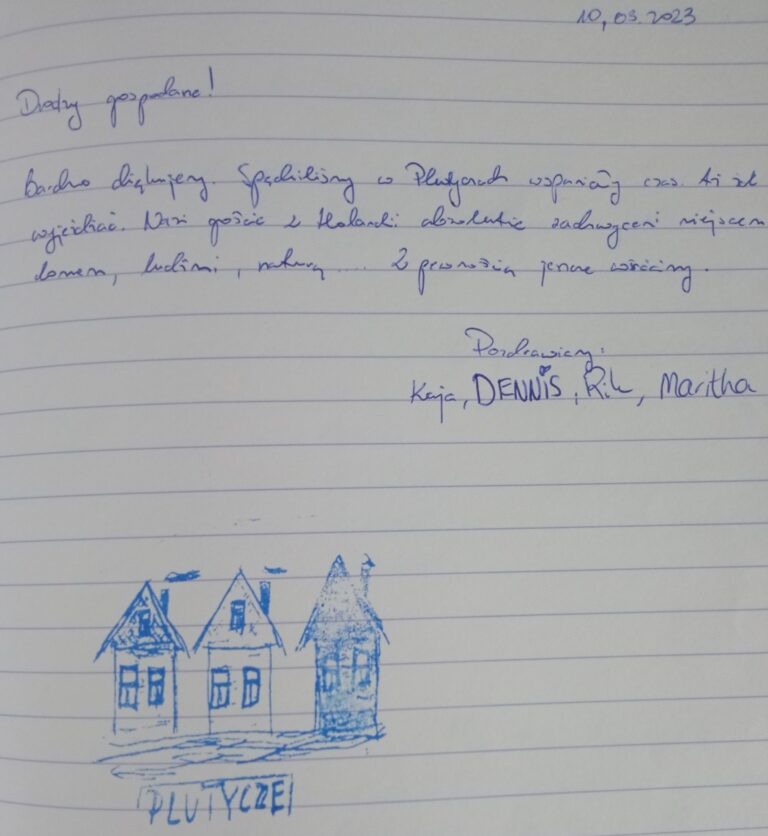 Kiedy rozpoczynaliśmy przygodę z wynajmowaniem Zielonego Domku, założyliśmy Księgę gości. Nie spodziewaliśmy się, że zwykły zeszyt stanie się swego rodzaju kroniką, w której oprócz dat pobytu i kilku grzecznościowych zdań znajdą się Państwa odczucia, wspomnienia i mnóstwo ciepłych słów, kierowanych nie tylko do nas i Zielonego Domku, ale też do naszych sąsiadów, całej wioski, objazdowego sklepu, który zatrzymuje się przed domkiem, a nawet bociana 🙂 Dziękujemy wszystkim naszym Gościom za życzliwość i pozytywną energię, a także za czas, wysiłek, niekiedy wręcz pasję, jakie wkładacie w swoje wpisy i rysunki. Zapraszamy do przeglądania niektórych wpisów poniżej.